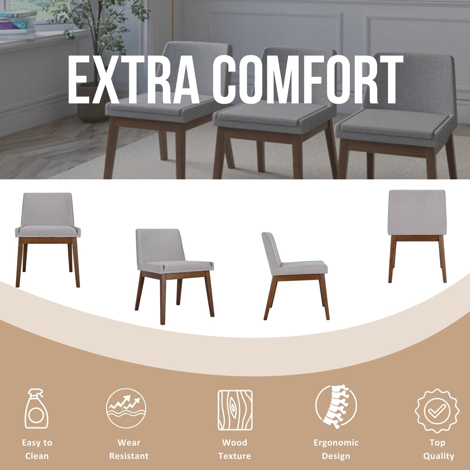 Chair Materials: Frames are crafted from solid rubber wood, providing durability and strength. The seat and back are fully upholstered with high-quality fabric, ensuring exceptional comfort and support.