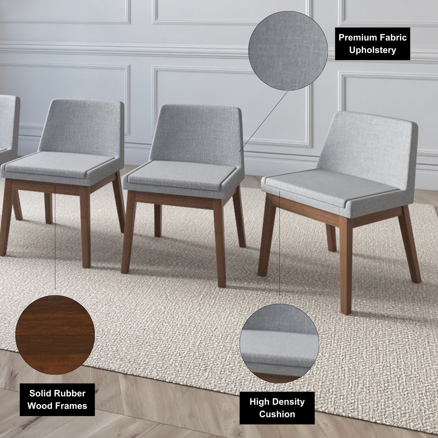 Frames are crafted from solid rubber wood, providing durability and strength. The seat and back are fully upholstered with high-quality fabric, ensuring exceptional comfort and support.