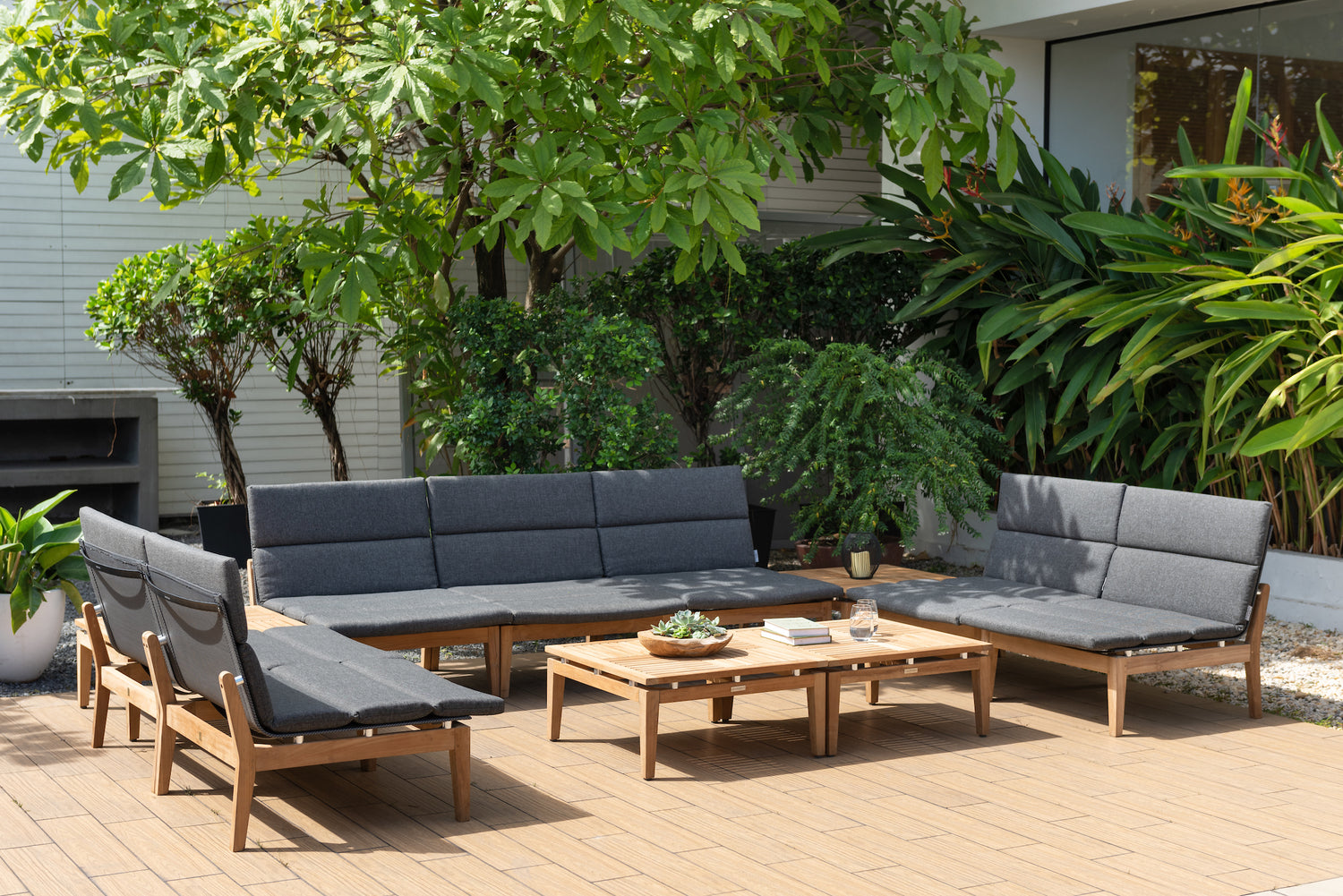 Made of high quality certified teak wood grown in Indonesia. Teak is a natural living material that is renowned for its rich golden-brown color but also for its classic and premium appearance after exposure to the elements of weather and time