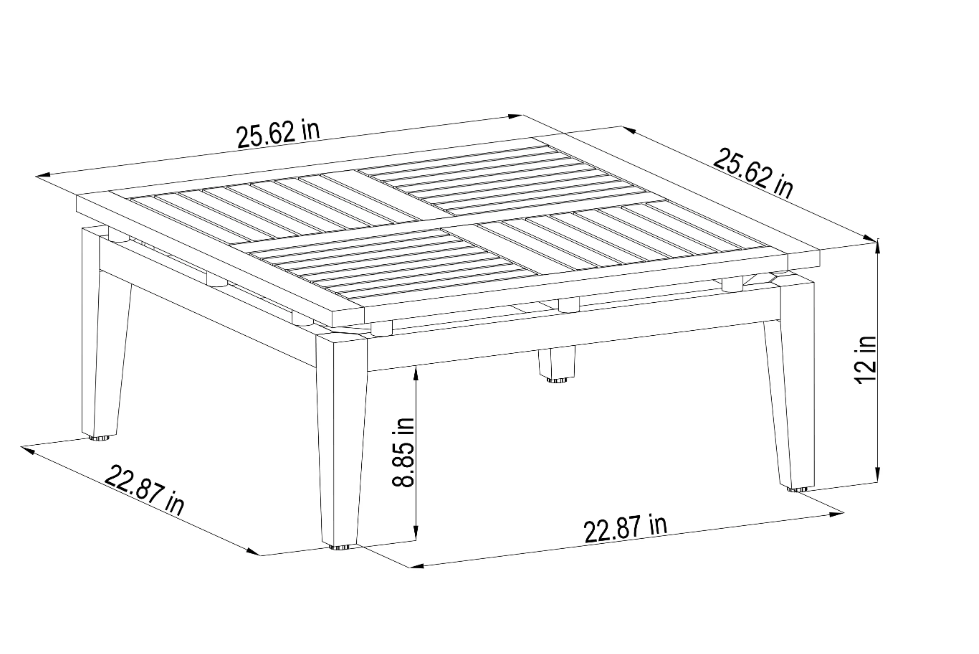- DIMENSIONS: 25.5L x 25.5W x 12H