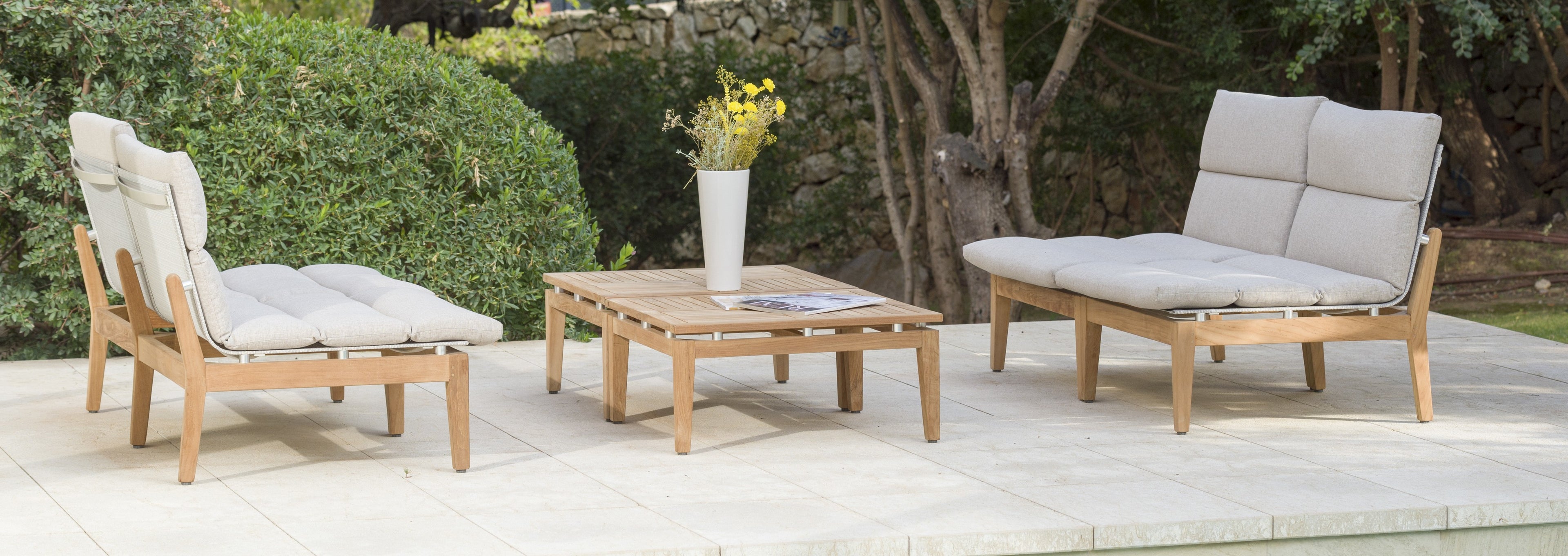 The Amber range is characterized by unique urban style and functionality – and so is its modular sofa. The table top comes with the FSC- certified Teak that creates the right balance with a little bit of touch of warmth. Elegant and durable at the same time, this sofa offers endless combinations including the removable back, ready to fulfil all your outdoor comfort needs. Table top in teak FSC. Cushions included in Olefin.