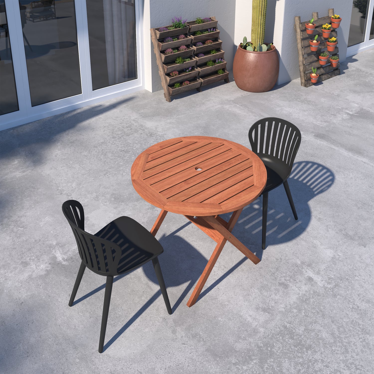 The Bistro 100% FSC Solid Hardwood Folding Table is made from 100% FSC certified eucalyptus for dependable durability. Its round design makes it perfect for small outdoor spaces. Folds flat for easy storage, making it ideal for any home.