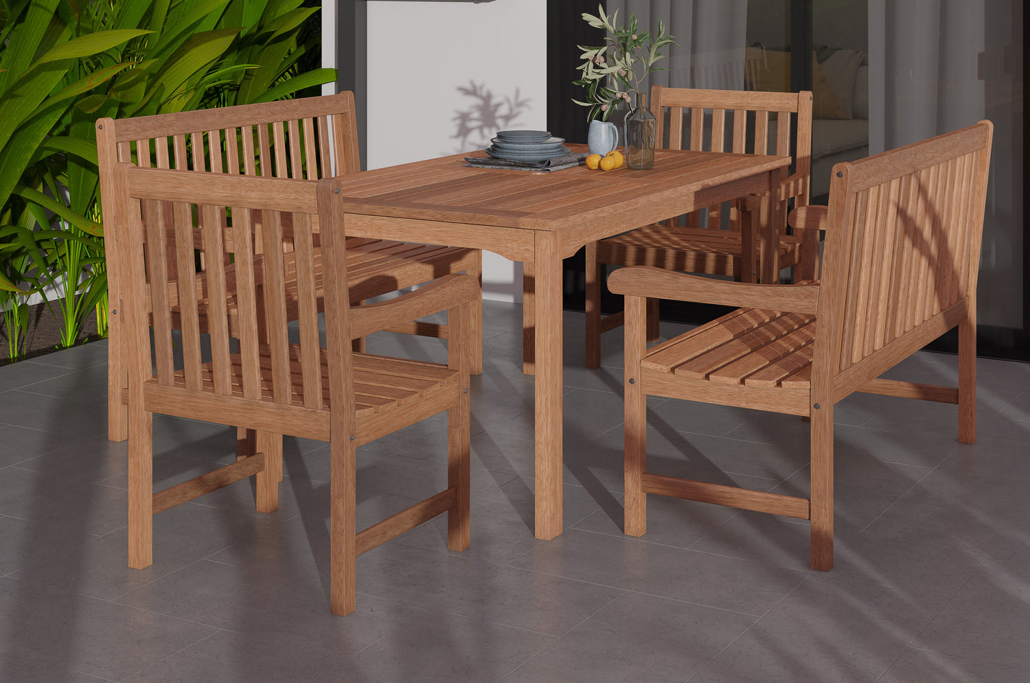 This Milano Bench is crafted from 100% certified hardwood, offering a timelessly elegant and durable piece of furniture for any outdoor space. With its 5-foot length, this bench provides ample seating for you and your family. Enjoy the classic style and strength of this hardwood bench for years to come.