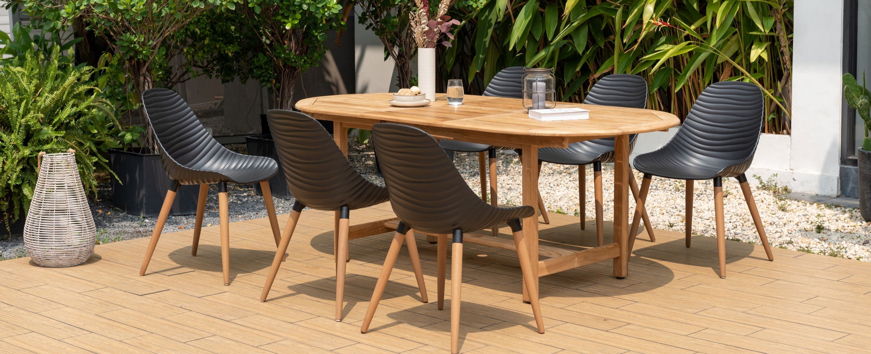 Teak is a natural living material known for its rich golden-brown color and its classic, premium appearance that develops over time and exposure to weather.