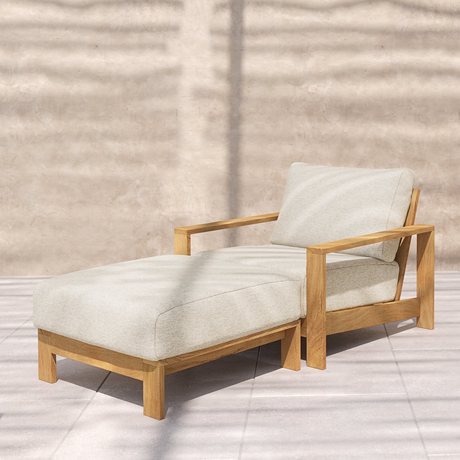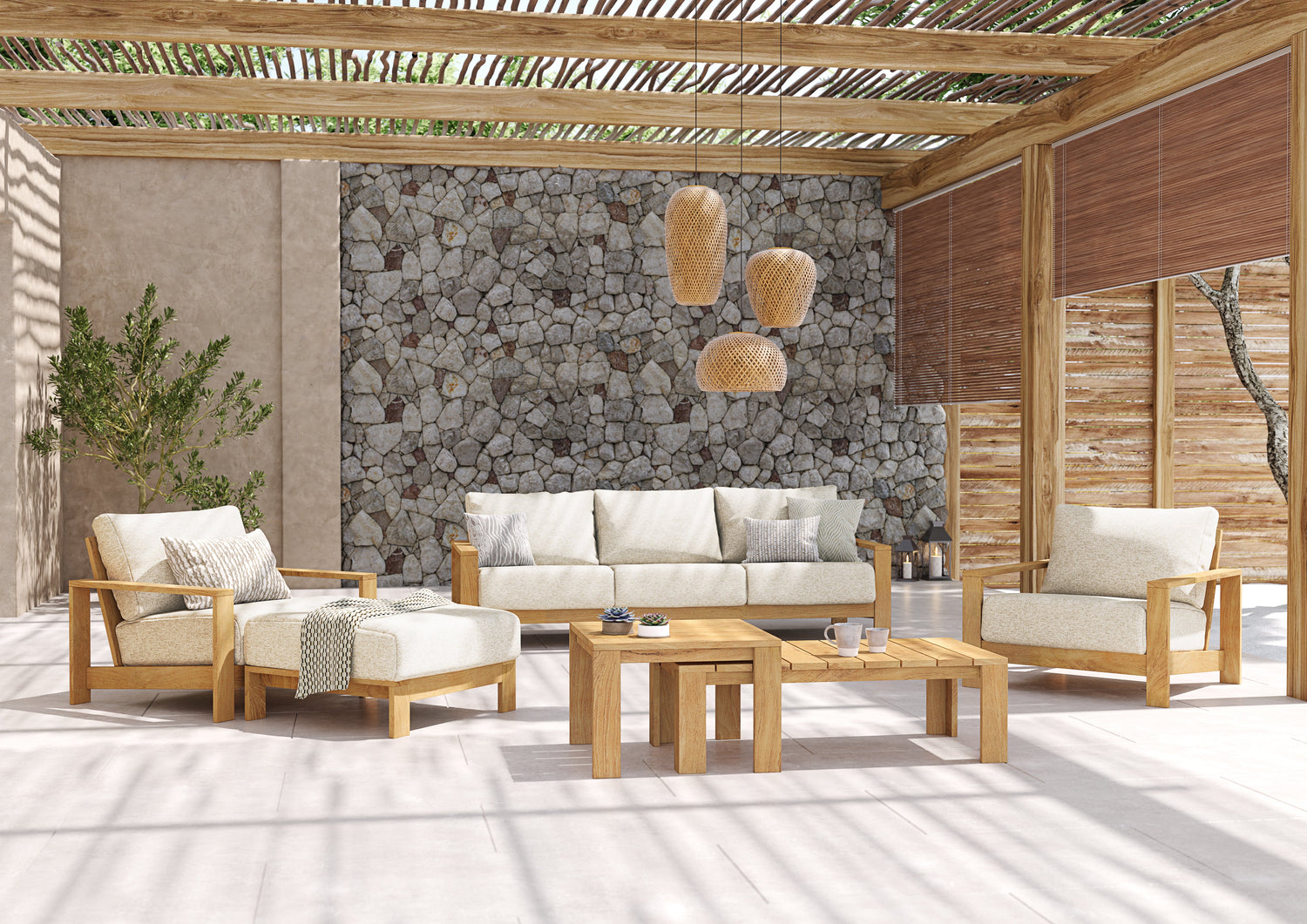 showcasing a raw teak aesthetic with clean, sleek lines. The design is