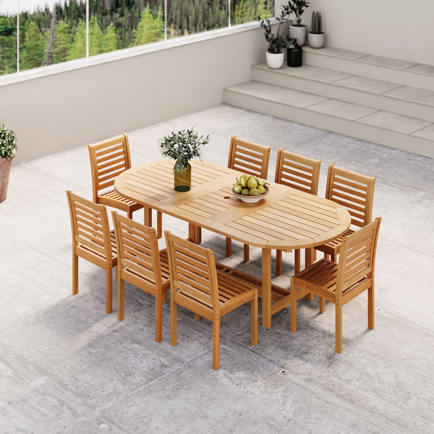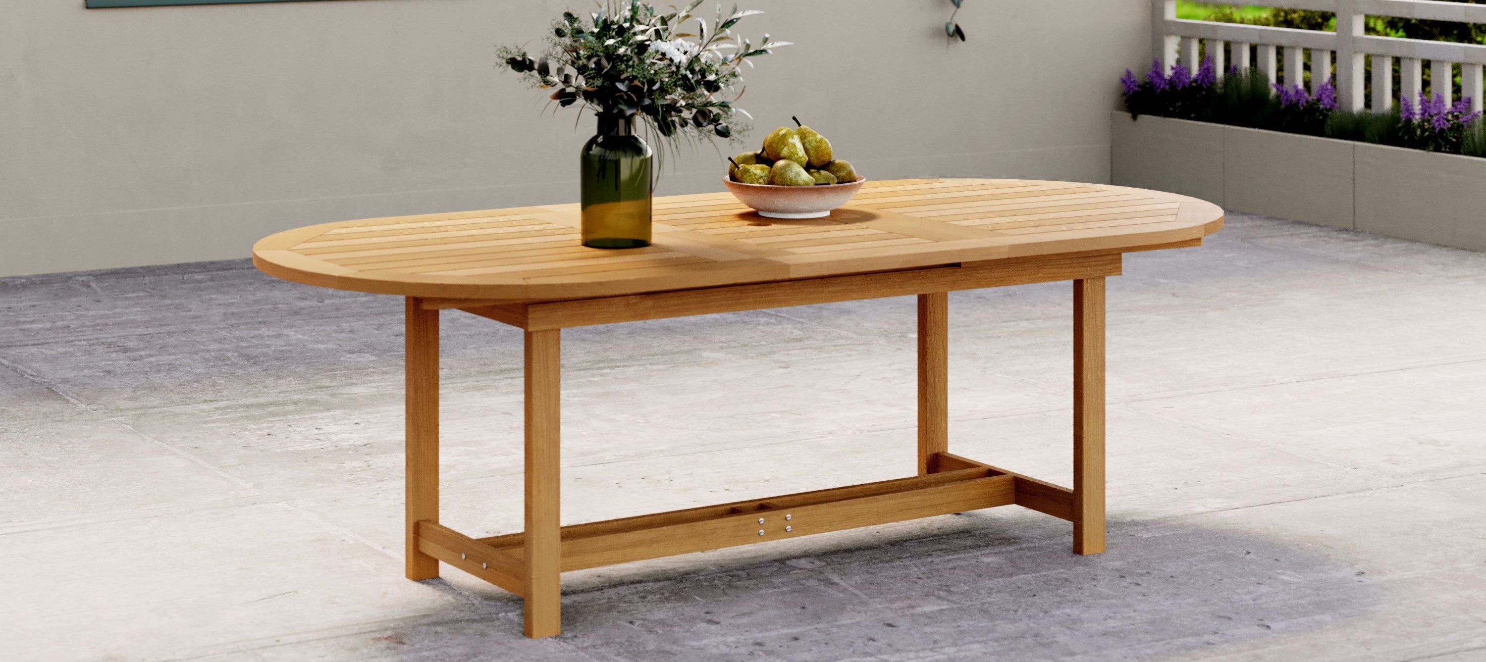 Grand Milano 100% Teak Finish Solid Hardwood Extendable Oval Dining Table