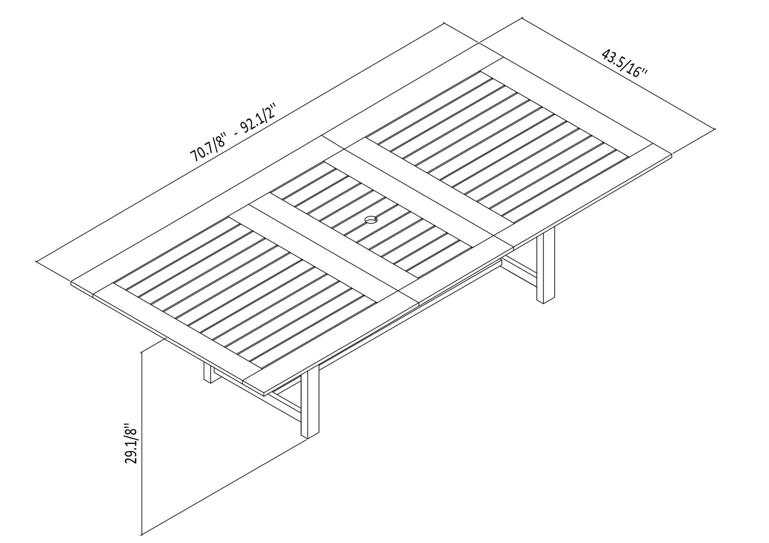 - 70.5L x 43.5W x 29H. Extended Length: 92.5