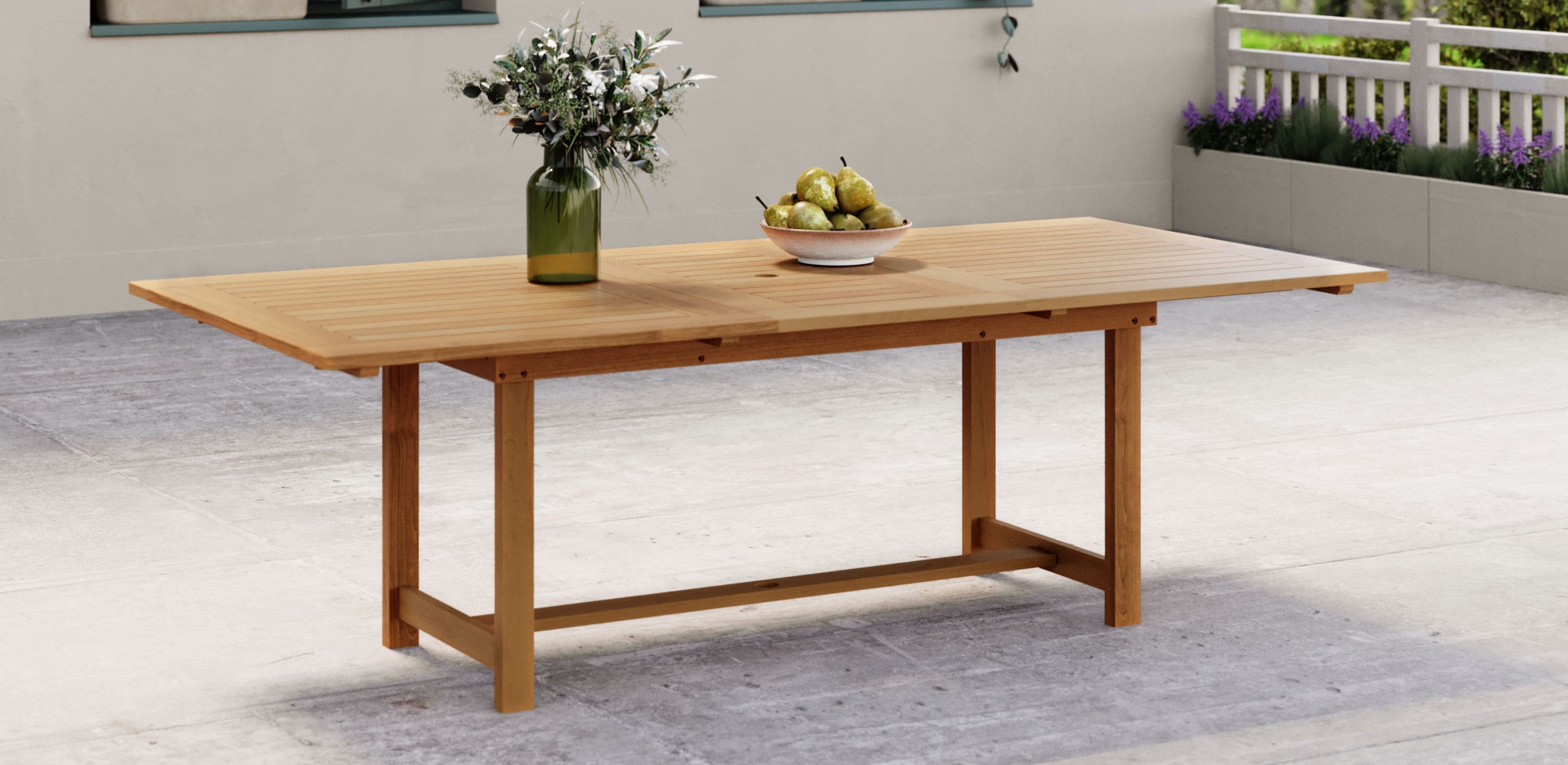 Grand Milano 100% Teak Finish Solid Hardwood Extendable Rectangular Dining Table