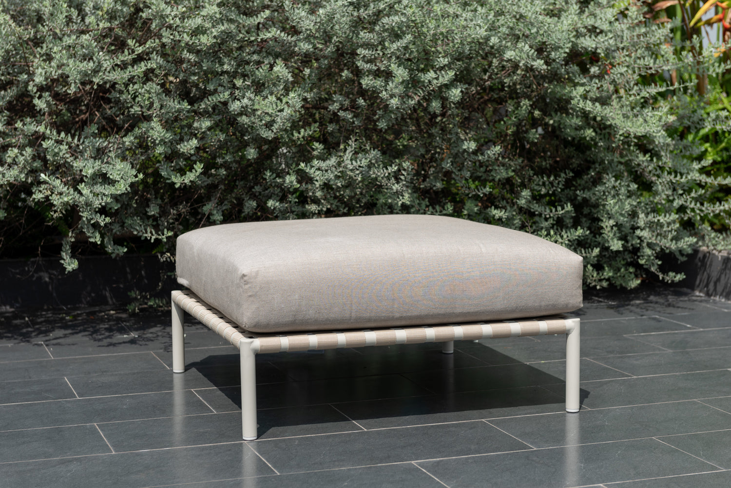 Blending sleek design with natural charm, the Horizon Lounge Set offers a modern touch with its meticulously woven beige rope detailing. The deep all-weather cushions provide ultimate comfort, encasing an aluminum frame that ensures durability. The set’s warm teak accents and minimalist lines create a relaxed yet sophisticated outdoor retreat