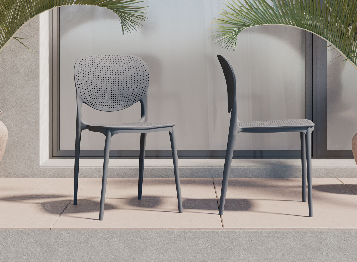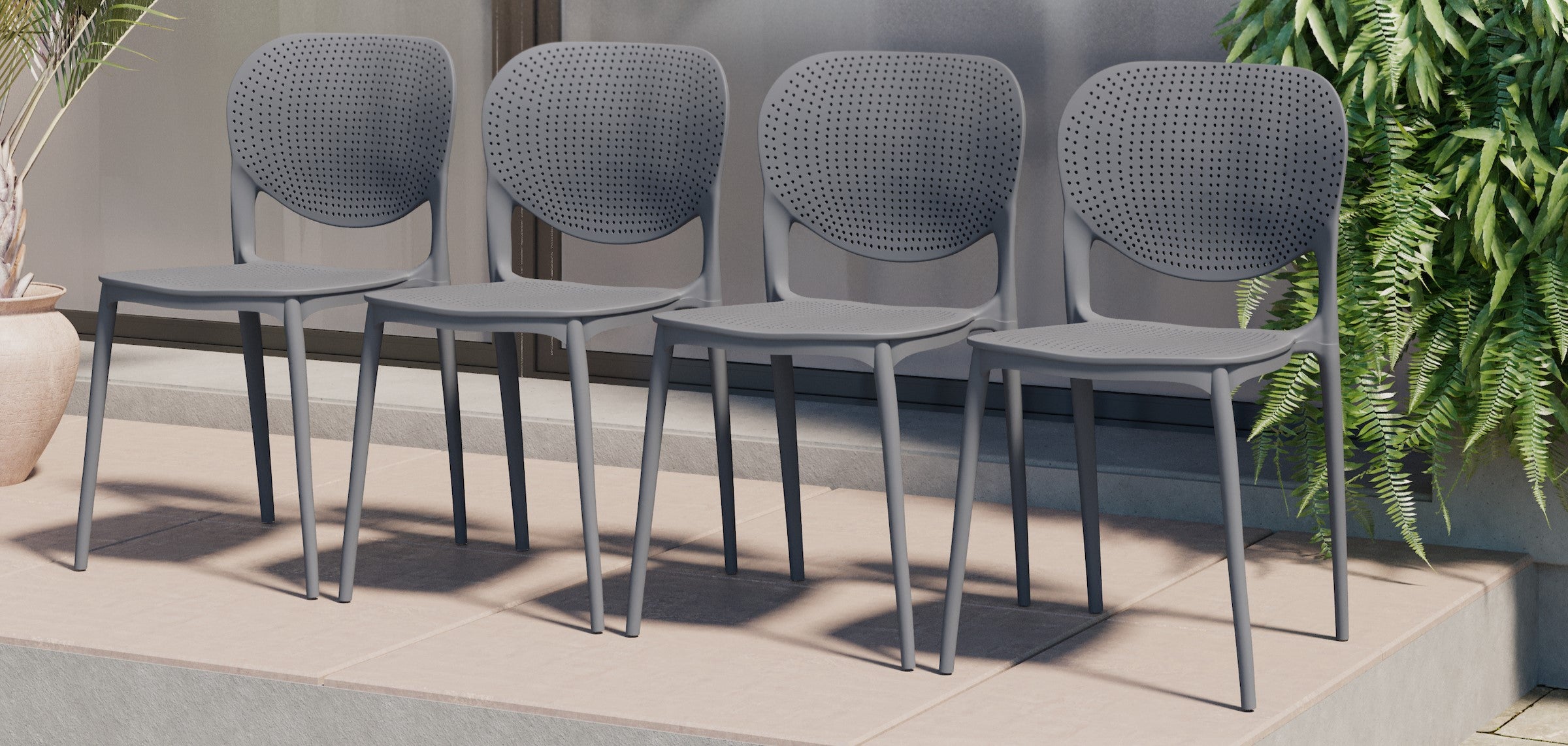 The Isa Grey Dining Chair is crafted with a distinctive recycled resin that gives a modern, luxurious look to any space. Enjoy a durable, supportive chair that stands the test of time. Perfect for any modern home or office.