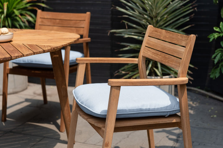 Jade Teak 100% FSC Certified Wood stacking Arm Chair With Blue Cushion