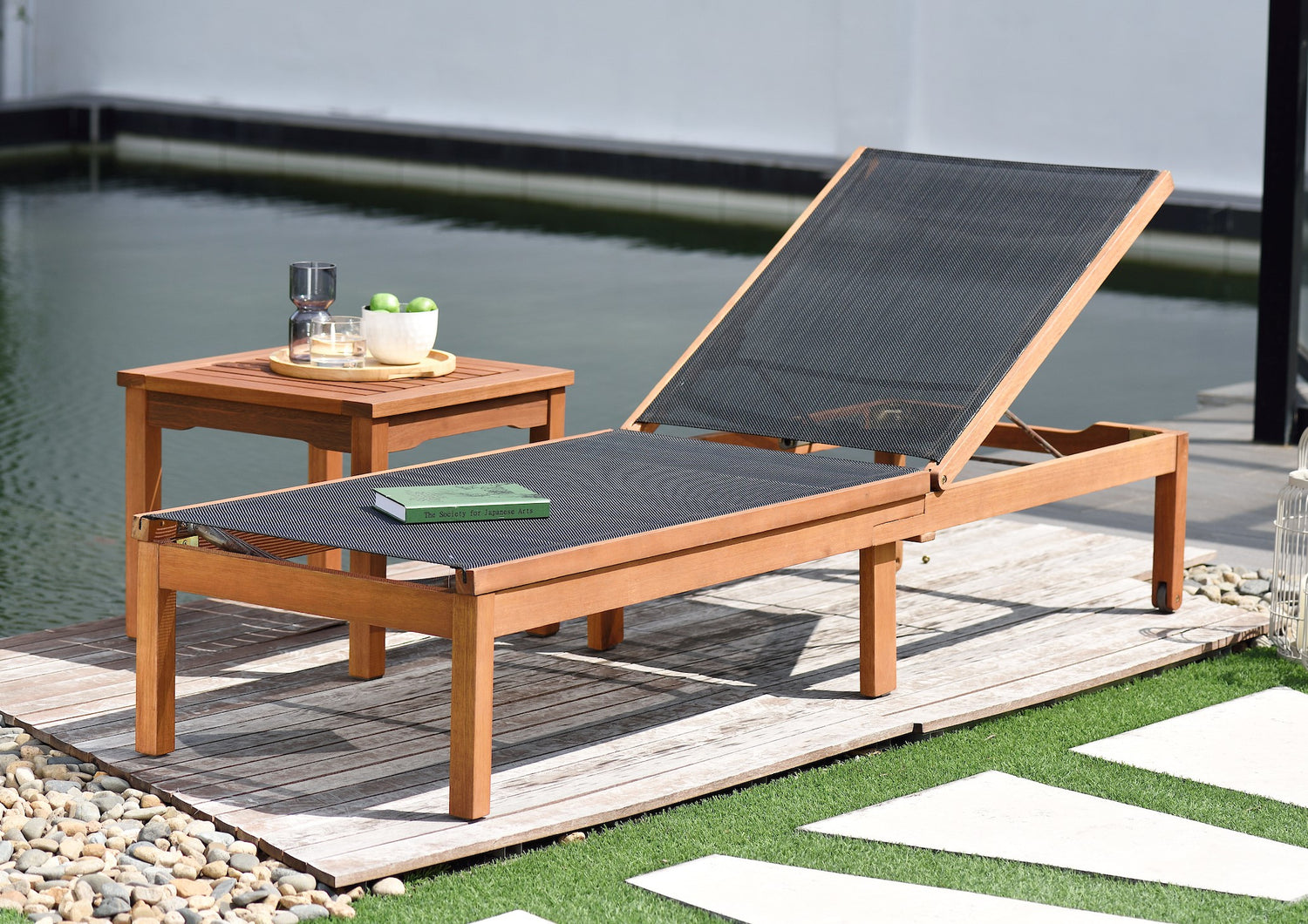 Lounger made of solid wood 100% FSC Certified and Weather Net Mesh.