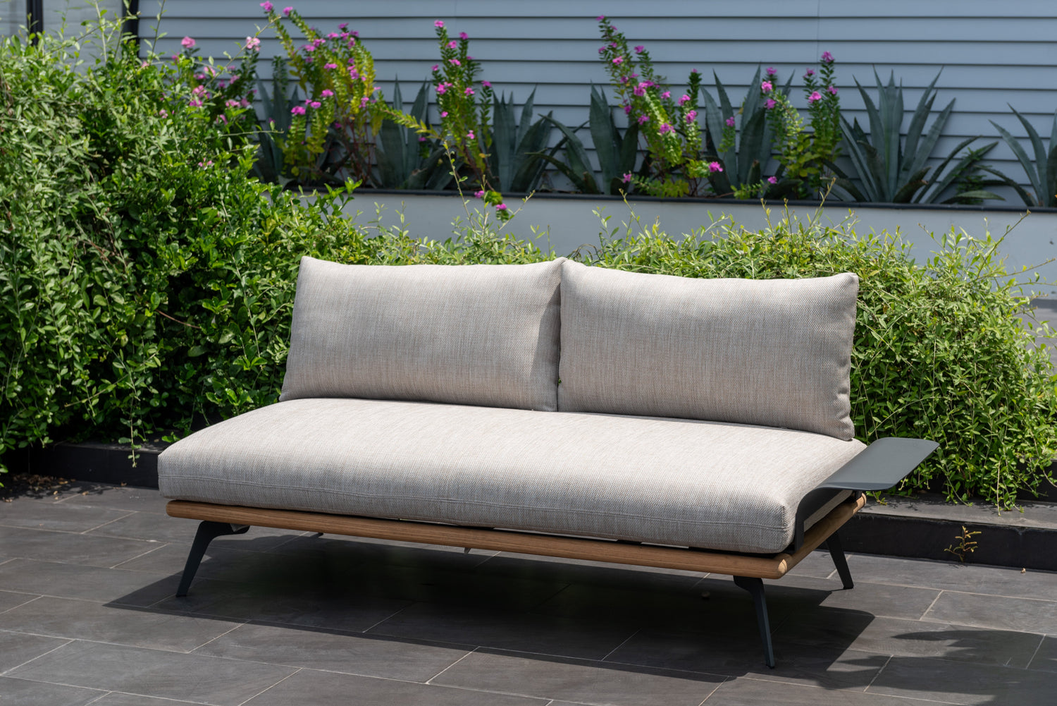 Crafted with meticulous attention to detail and using the finest materials, the Pearl seamlessly blends comfort, style, and functionality. Each piece is meticulously designed with FSC ™-certified teak, ensuring durability, while the sleek aluminum frames, with their elegantly curved arms, add a touch of modern sophistication. Additionally, the Pearl features cushions made from premium Sunbrella ® fabric, enhancing both luxury and resilience. Warm and inviting, the Pearl sofa set warmly welcomes you to relax and unwind. It’s exceptional design makes it the perfect addition to your outdoor sanctuary, where comfort meets elegance effortlessly.