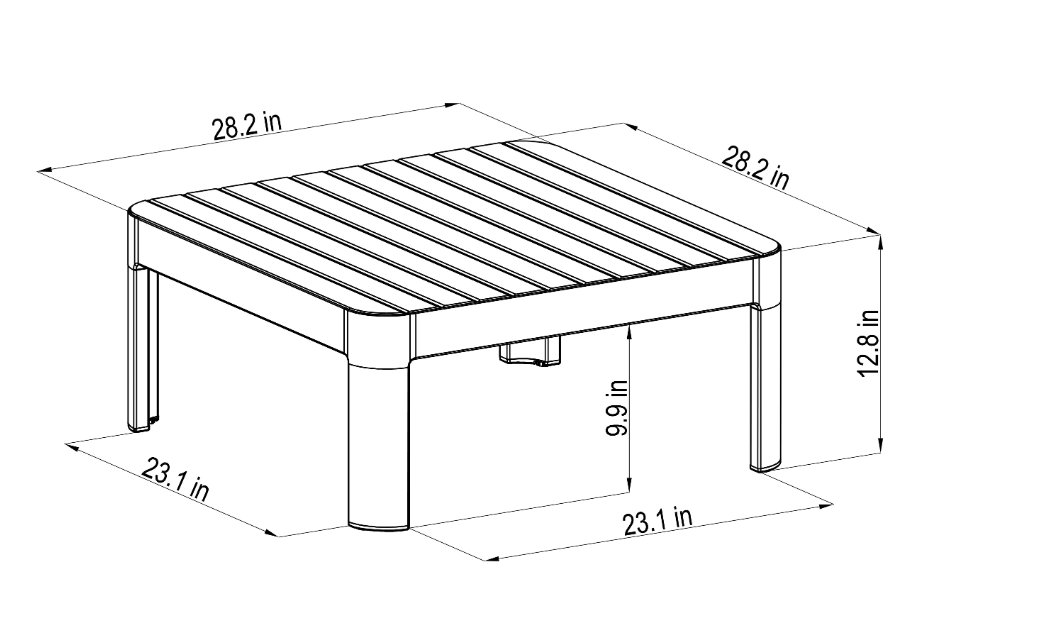 - COFFEE TABLE DIMENSIONS: 28,18L x 28,18W x 12,79H