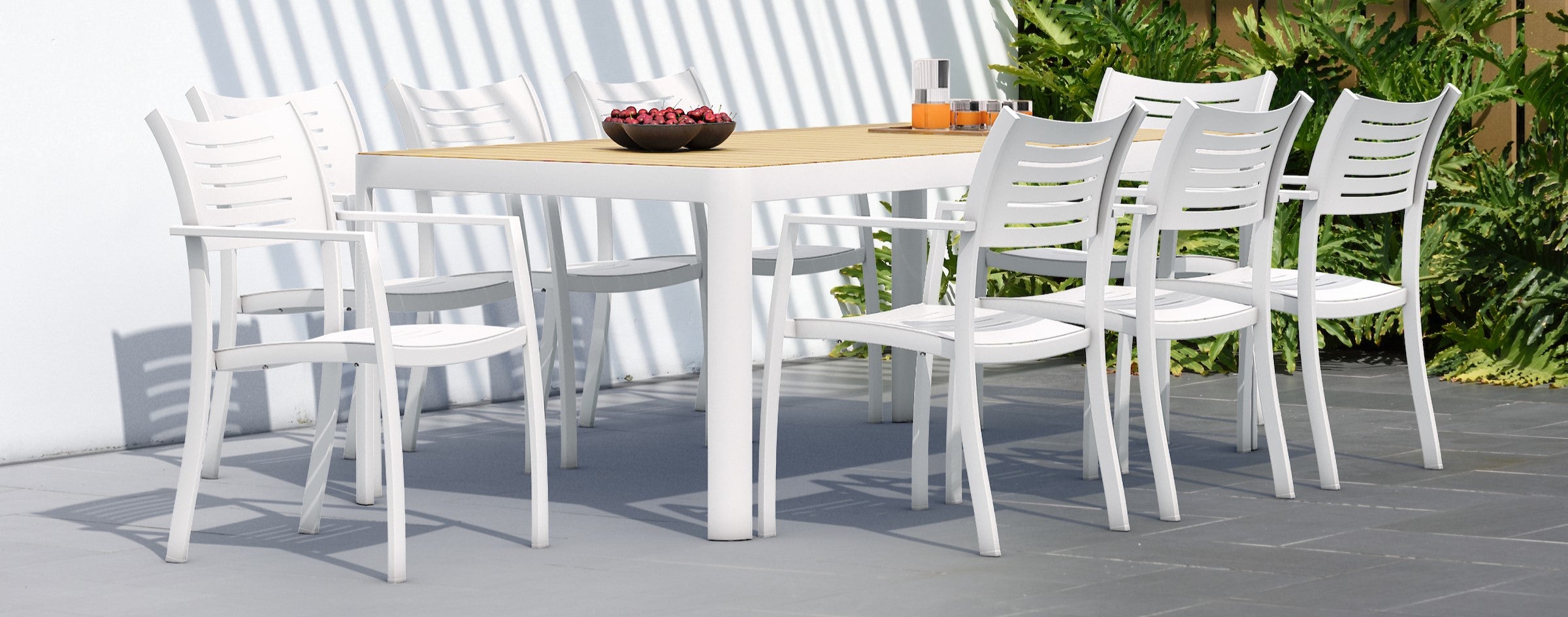 - Stackable Chairs: Designed under a modern influence these patio chairs are durable, lightweight, and stackable