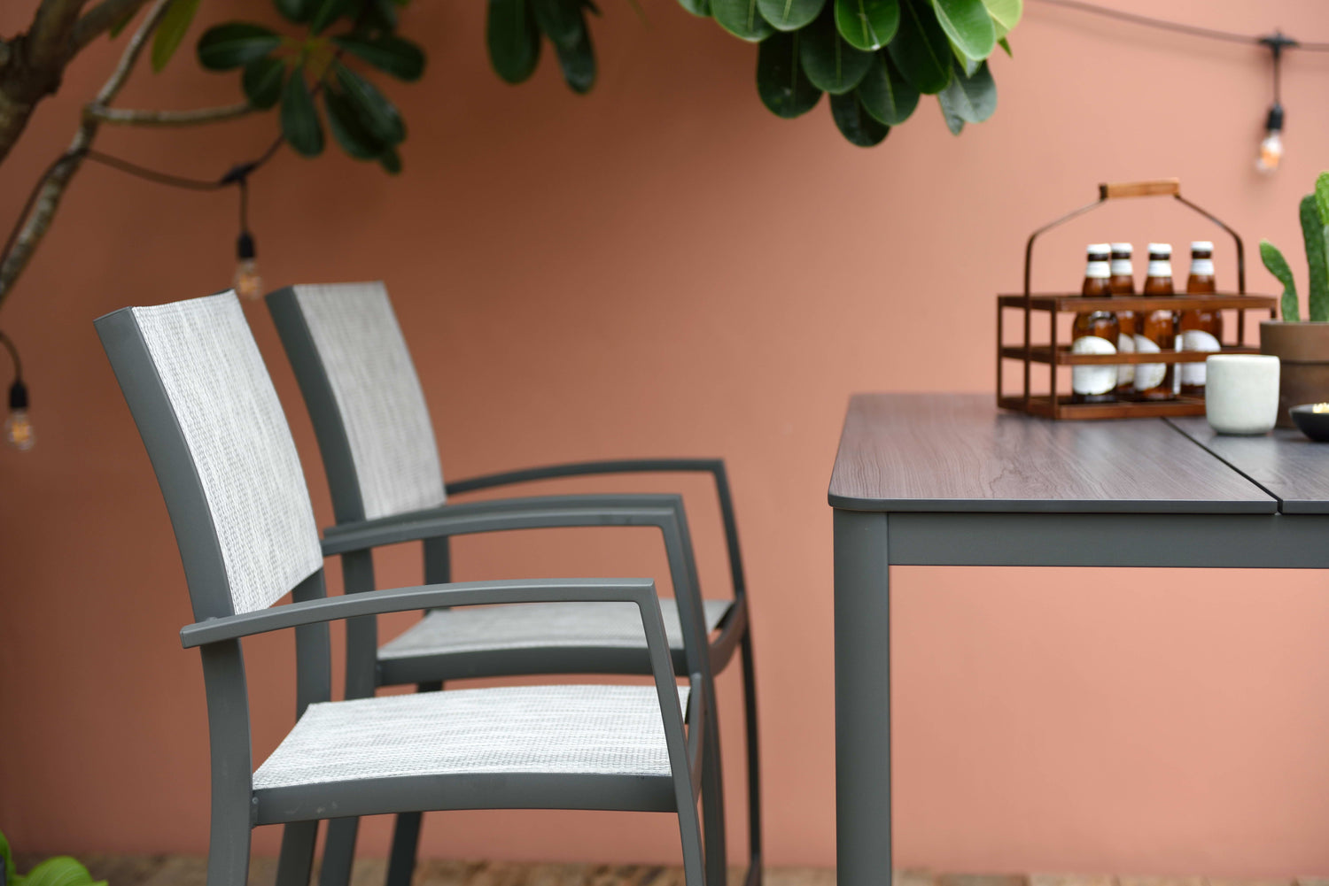 Chair Materials: Built with a rust-resistant aluminum frame and a breathable Weather-Net® mesh seat and back, these chairs deliver lasting strength, superior comfort, and easy maintenance, making them ideal for year-round outdoor use.