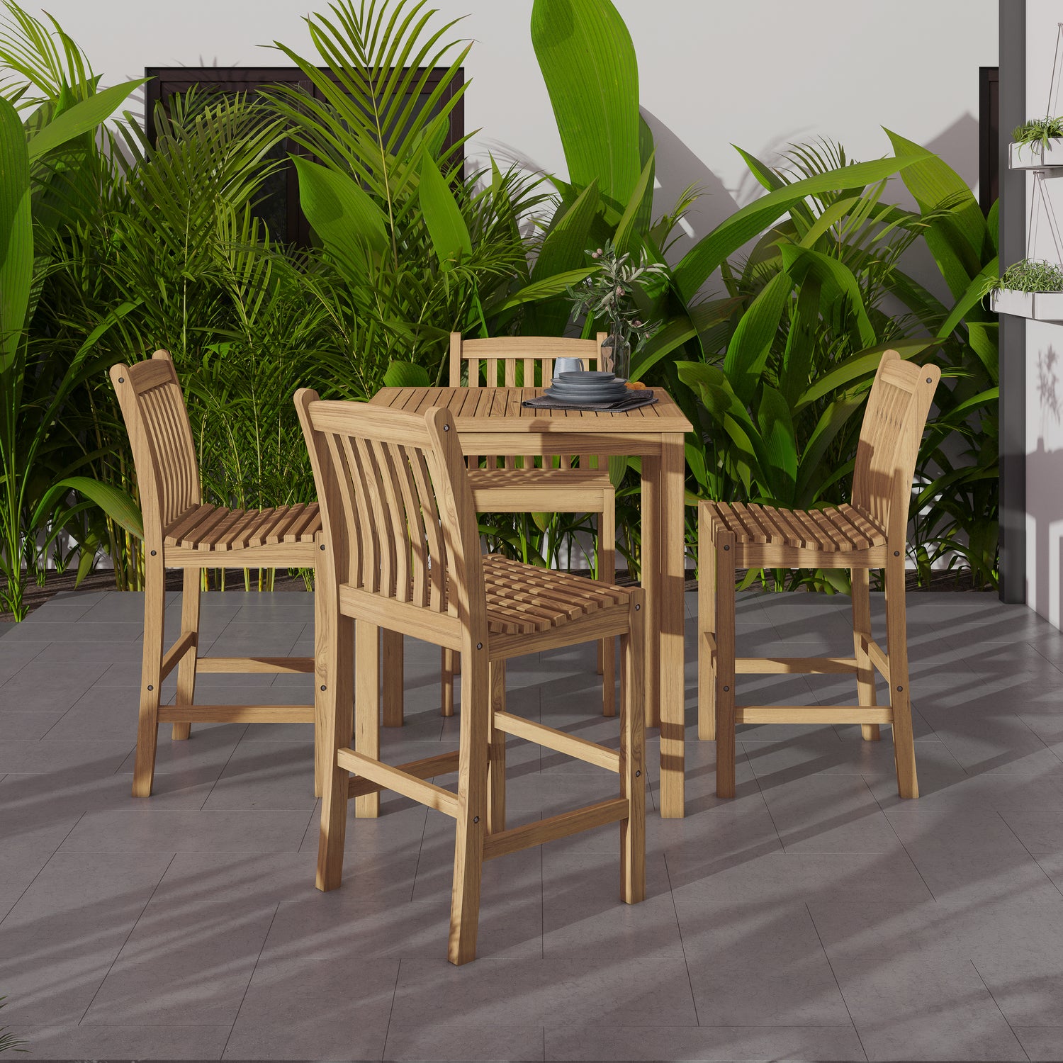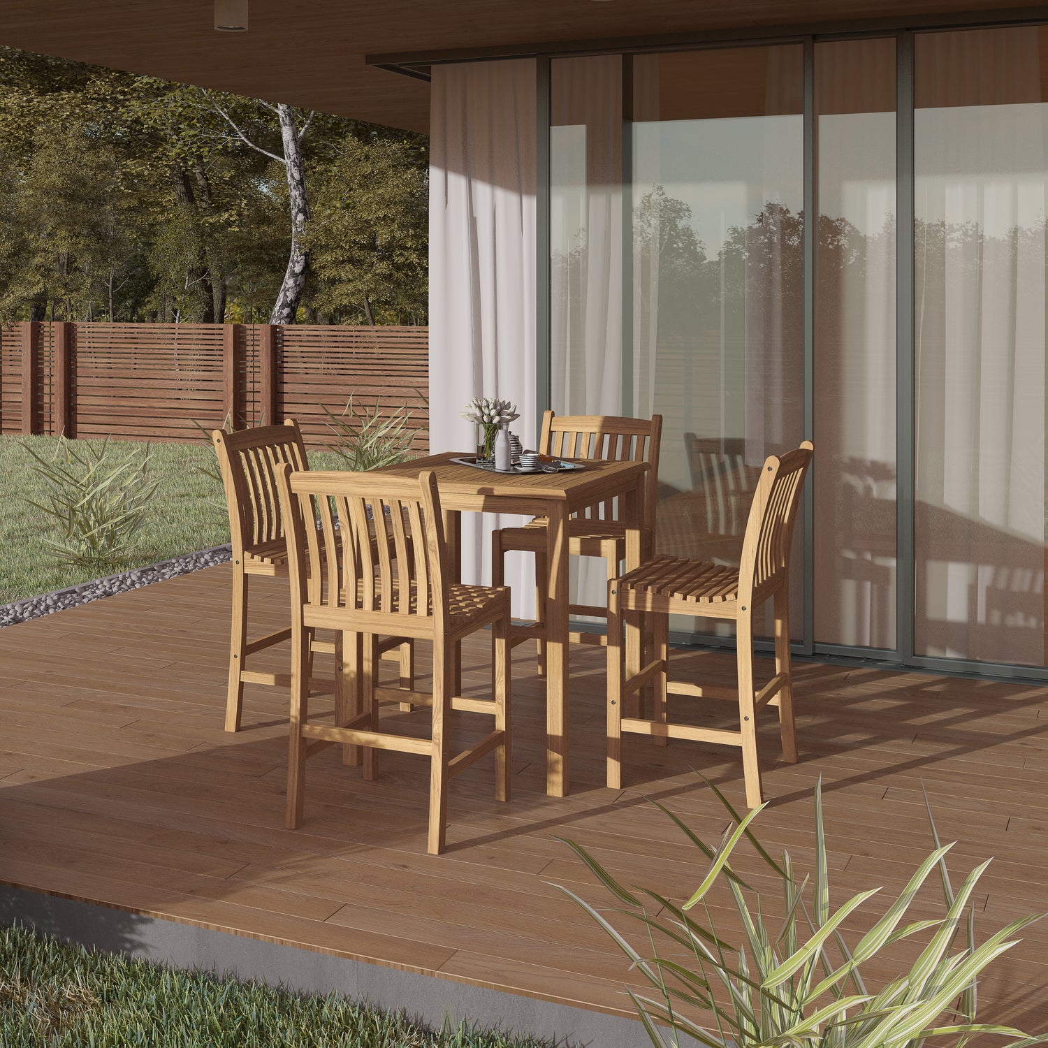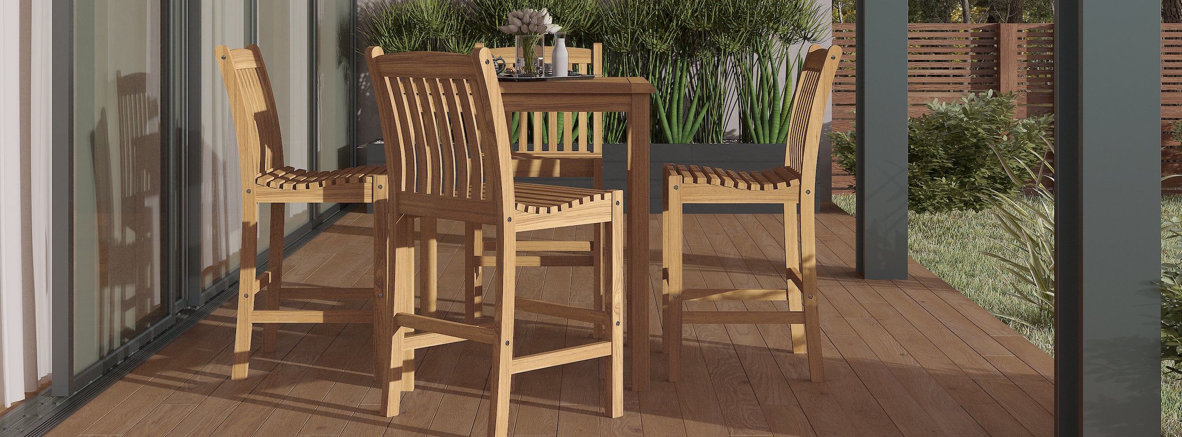 These Boma 100% Teak Wood High Dining Chairs are perfect for any outdoor dining area. Constructed from sustainably forests teak wood for lasting durability, these chairs are a stylish and comfortable addition to any patio, garden, or dining area. Enjoy the natural beauty of teak with these high-quality chairs.