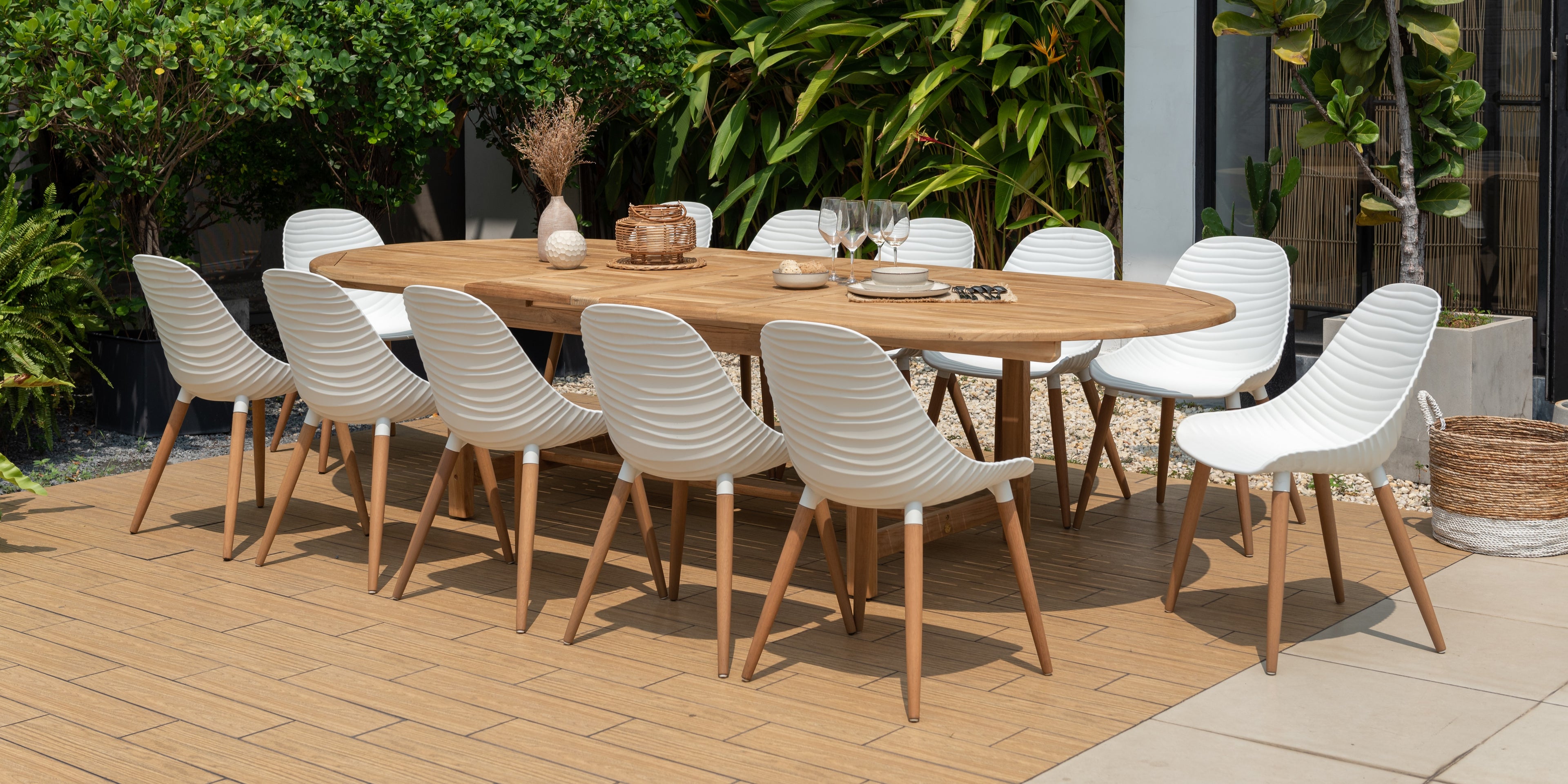 Dian Teak 100% FSC Solid Wood Extendable Oval Deluxe Table
