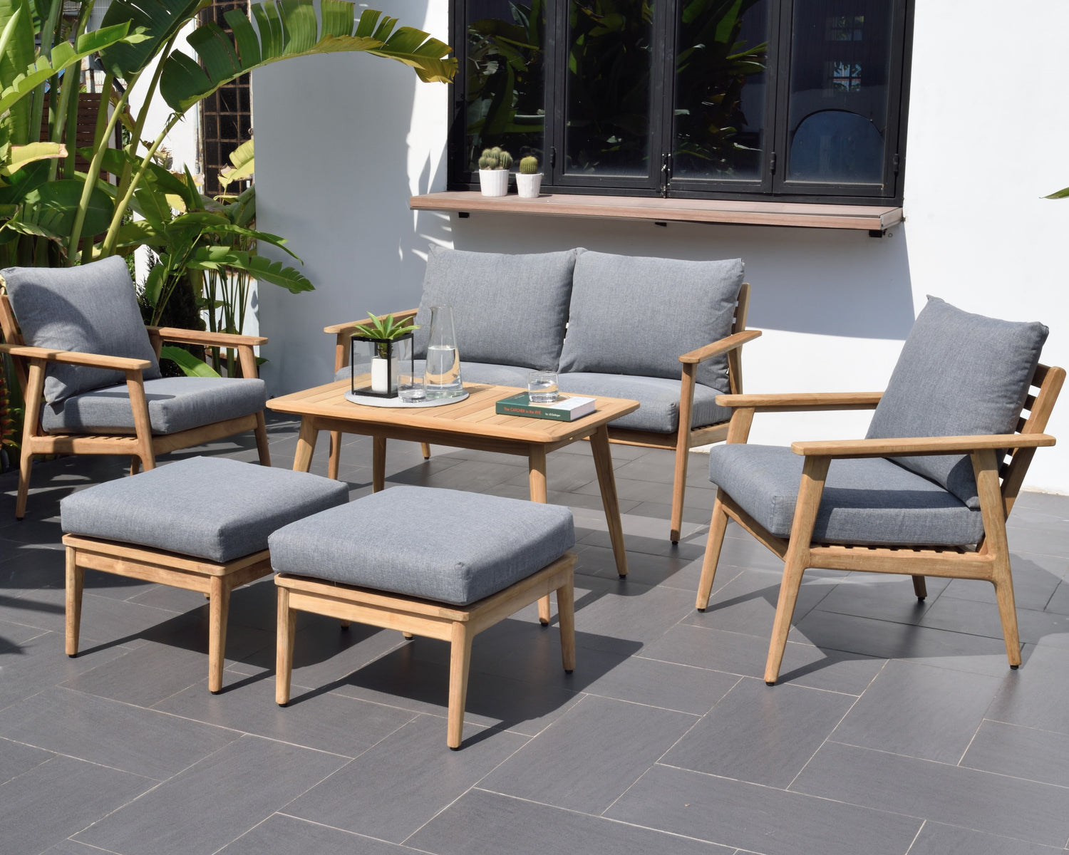 Eve Teak is the perfect combination of style and quality. Made with 100% FSC Certified Solid Wood for lasting strength, this deepseating sofa is upholstered in an elegant grey cushion that gives it a classic look that will go with any decor. Bring sophisticated luxury to your home with this timeless piece.