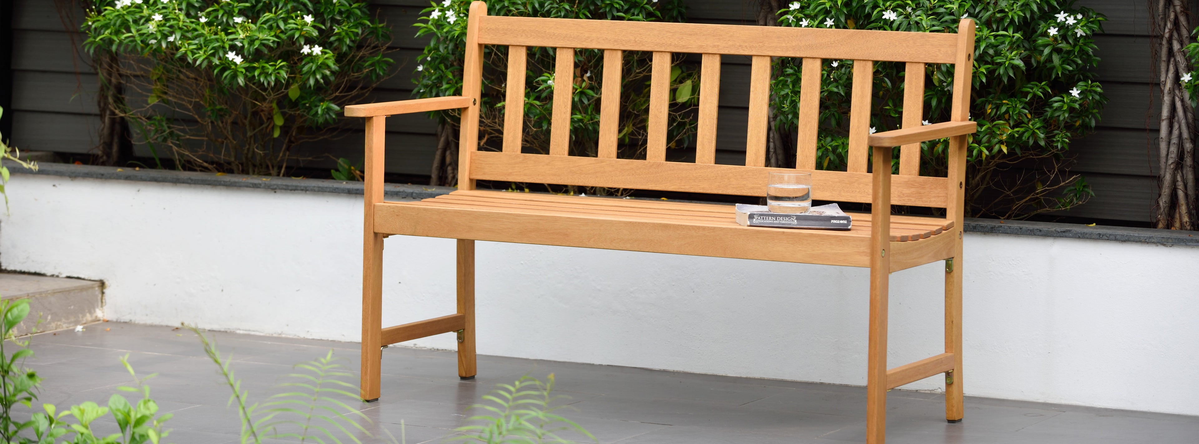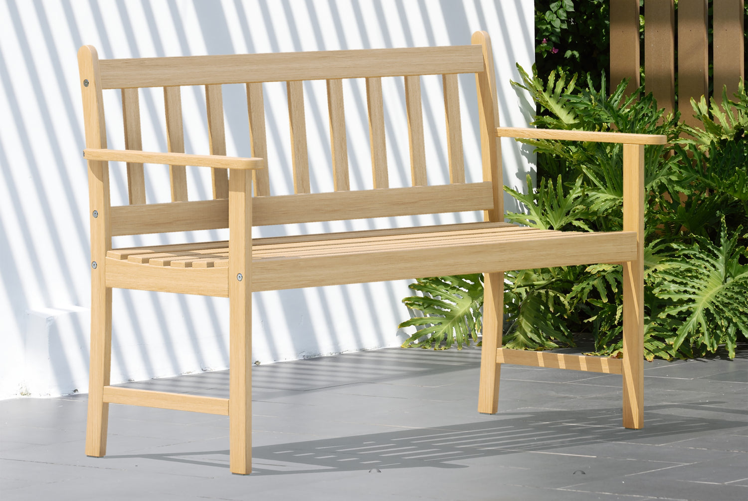 Lamu 100% Certified Light Oak Finish Wood Two Seater Bench