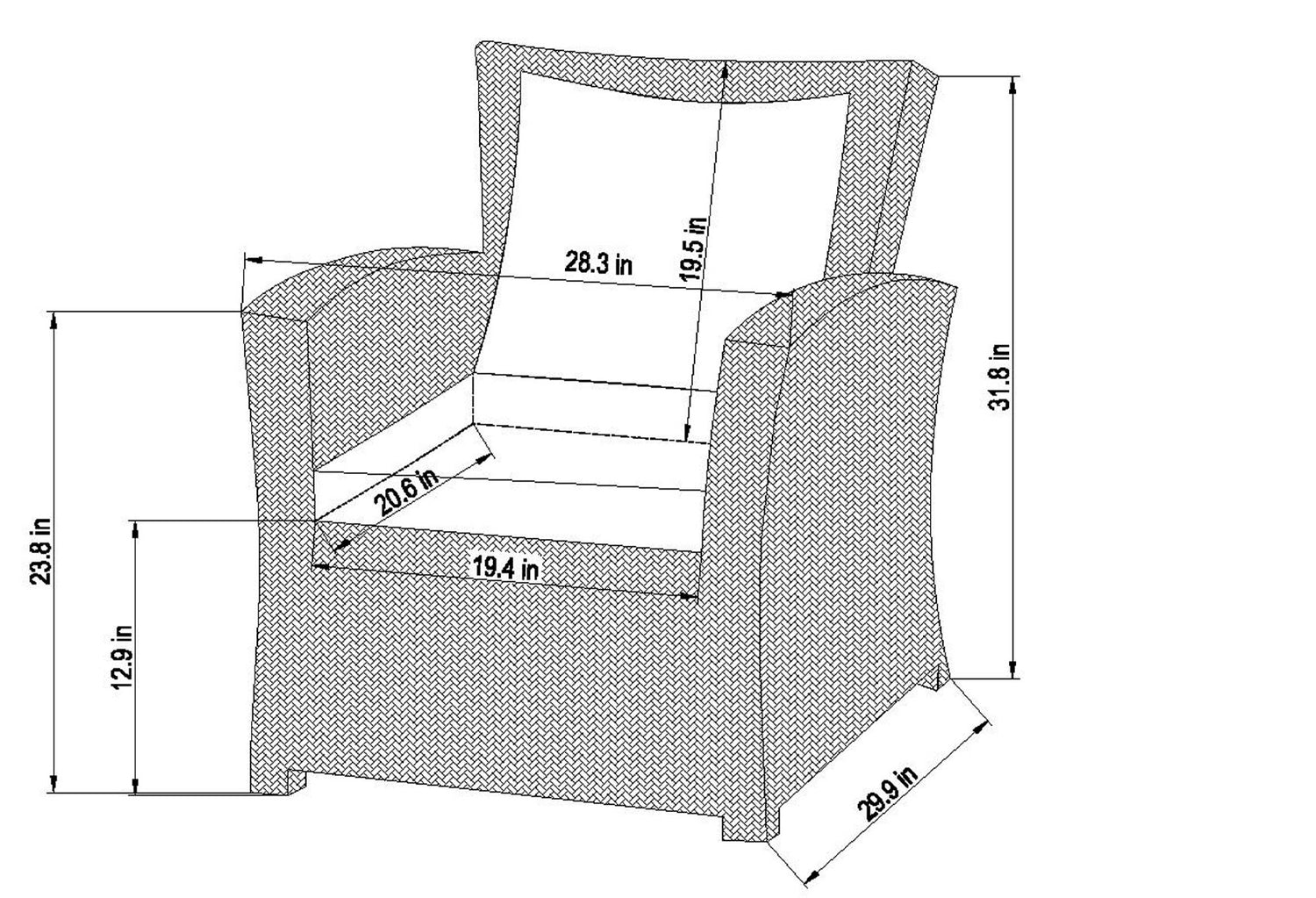 - Dimensions Armchair: 30L x 28.5W x 32H