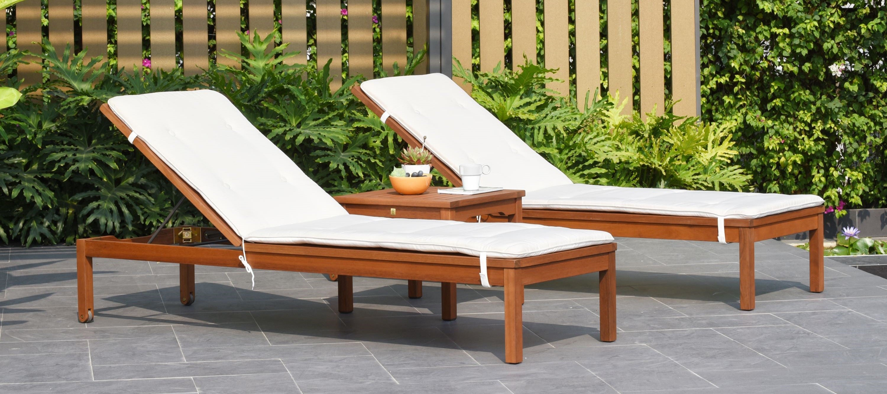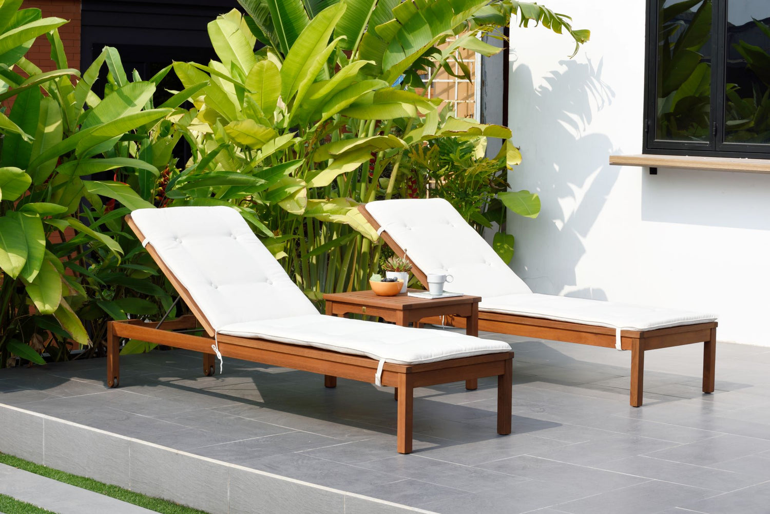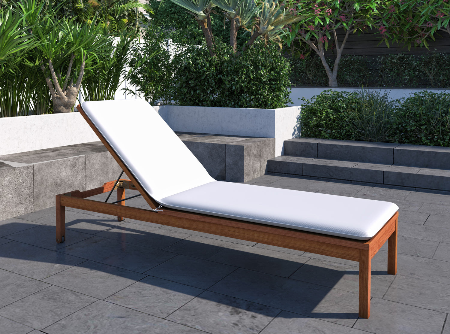 The Washburn Hardwood Lounger with White Cushion is a classic piece of outdoor furniture, crafted with solid hardwood for superior durability. The lounger's white cushion coordinates beautifully with its solid wood frame, letting you enjoy your outdoor space in comfort and style.